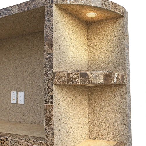 Finish your counter top with granite, porcelain or natural stone tile. Ameristone adheres more securely than traditional stucco for a finish that lasts even longer along with being weather resistant.